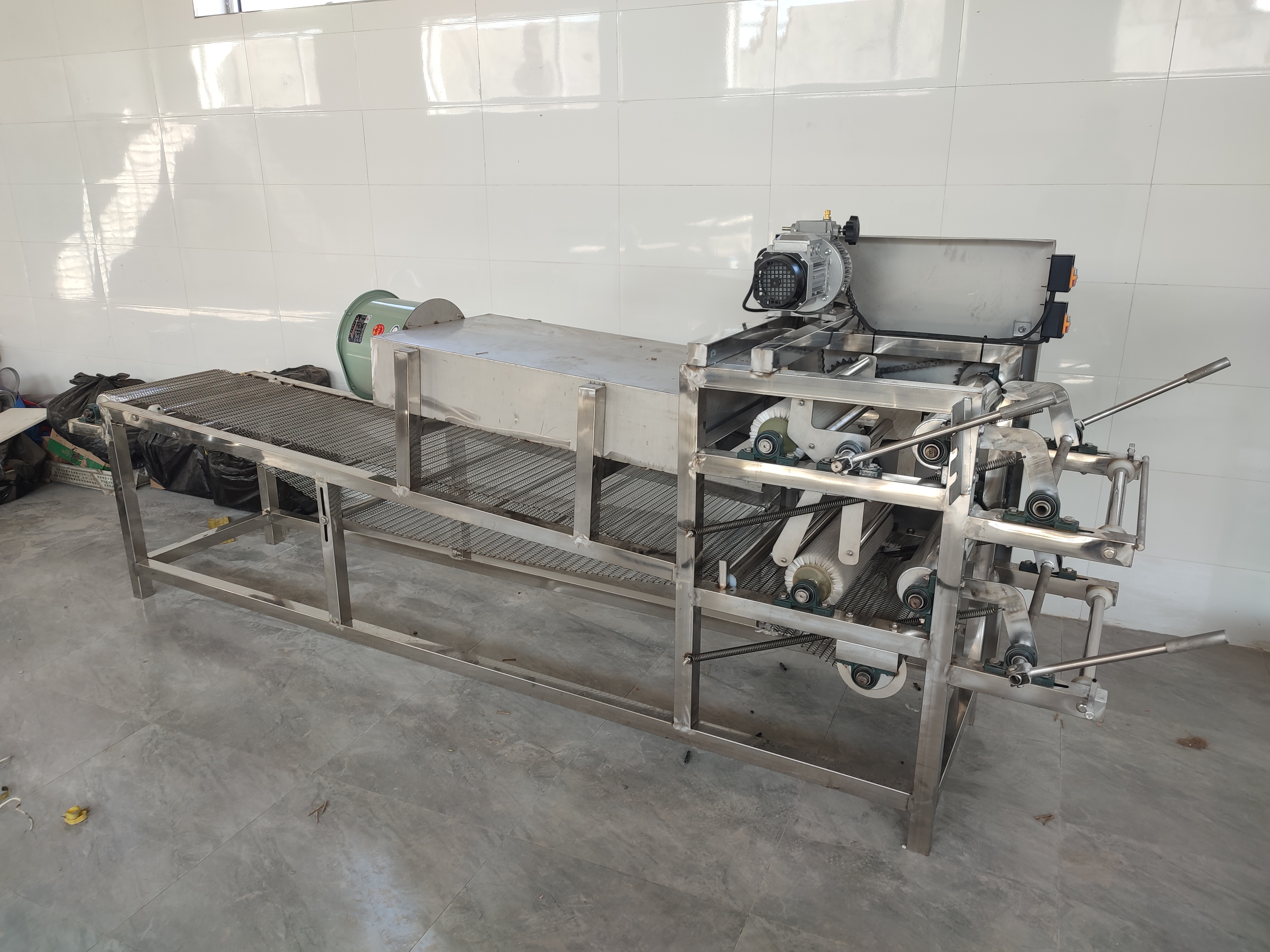 豆腐皮雙剝皮機(jī)七層九米攤晾線長9米,可選雙剝皮機(jī)五層13米豆腐皮攤晾線,根據(jù)場地來選擇攤晾線